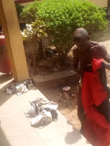 unidentified man was arrested while picking female undies and soaked sanitary pads in Akure, Ondo state today January 2nd
