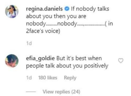 “If nobody talks about you then you are nobody………nobody…..,…………….( in 2face’s voice)” she wrote.