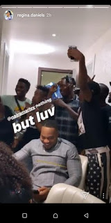 Popular Nollywood actors were seen taking selfies with him and celebrating him as he entered into the building. He also met with Regina Daniels’ husband, Ned nwoko.